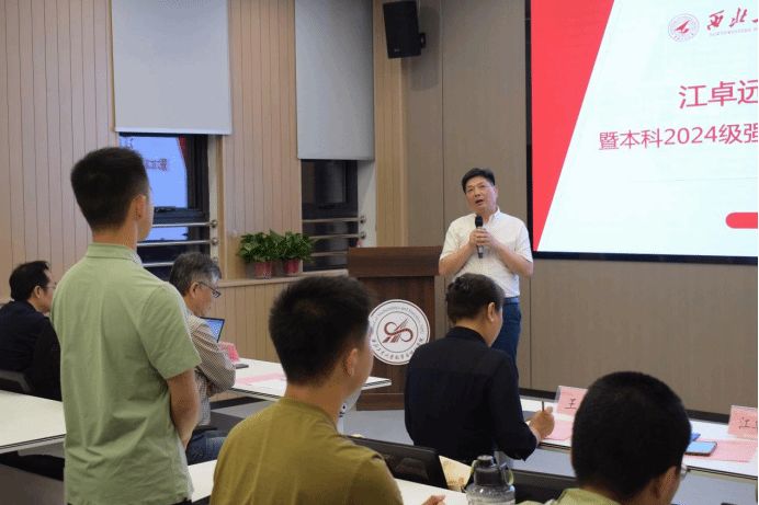 会上,聂玉峰院长发表致辞,他提到,江卓远研究员的职业生涯,始终贯穿着对行业人才培养的重视。江校友将个人成长融入国家战略,以实际行动彰显了“功成不必在我,功成必定有我”的担当。聂院长鼓励同学们打通学科壁垒,像江研究员一样在跨界融合中寻找创新突破口。