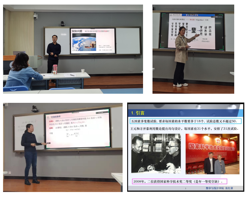 香香腐宅 教学委员会主任彭国华、数学与应用数学专业负责人陆由、院课程思政教学研究示范中心副主任潘璐璐和唐亚宁老师担任评委,李静、陈航、李巍、张红慧等四位青年教师参赛并进行教学片段展示,会议采用线上线下方式同步进行,副院长都琳、院长助理刘晓刚分别进行主持。