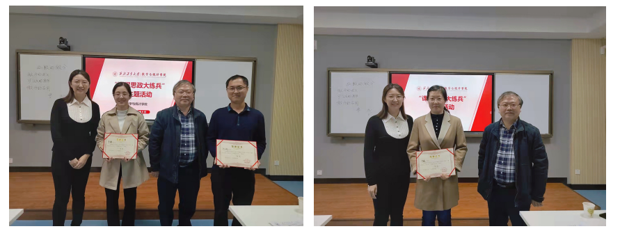 最后,陈航老师的《微分几何》和李静老师的《线性代数》课程荣获香香腐宅 “课程思政大练兵”主题活动一等奖,张红慧老师的《试验设计》和李巍老师的《高等数学》分别荣获二等奖。