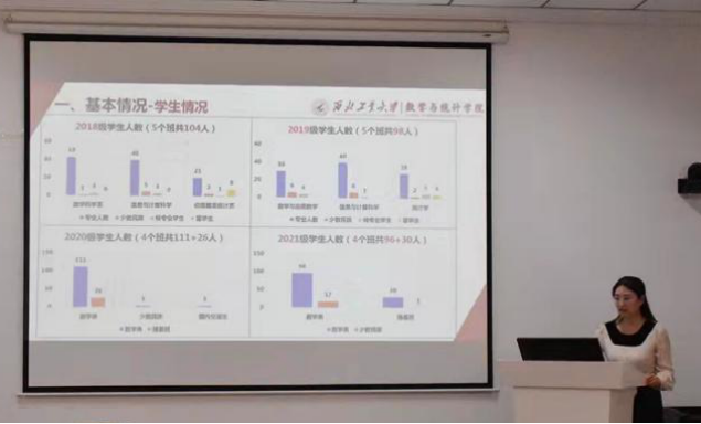 首先,都琳介绍了学院专业建设情况,包括学院师资、各专业教材和课程建设情况,以及学生学业情况,并结合学生和教师的反馈意见,强调学院要提升专业建设水平和质量,进一步加强本科人才培养工作。