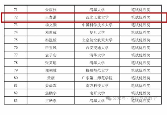 我院王泰淇同学荣获丘成桐大学生数学竞赛单项优胜奖