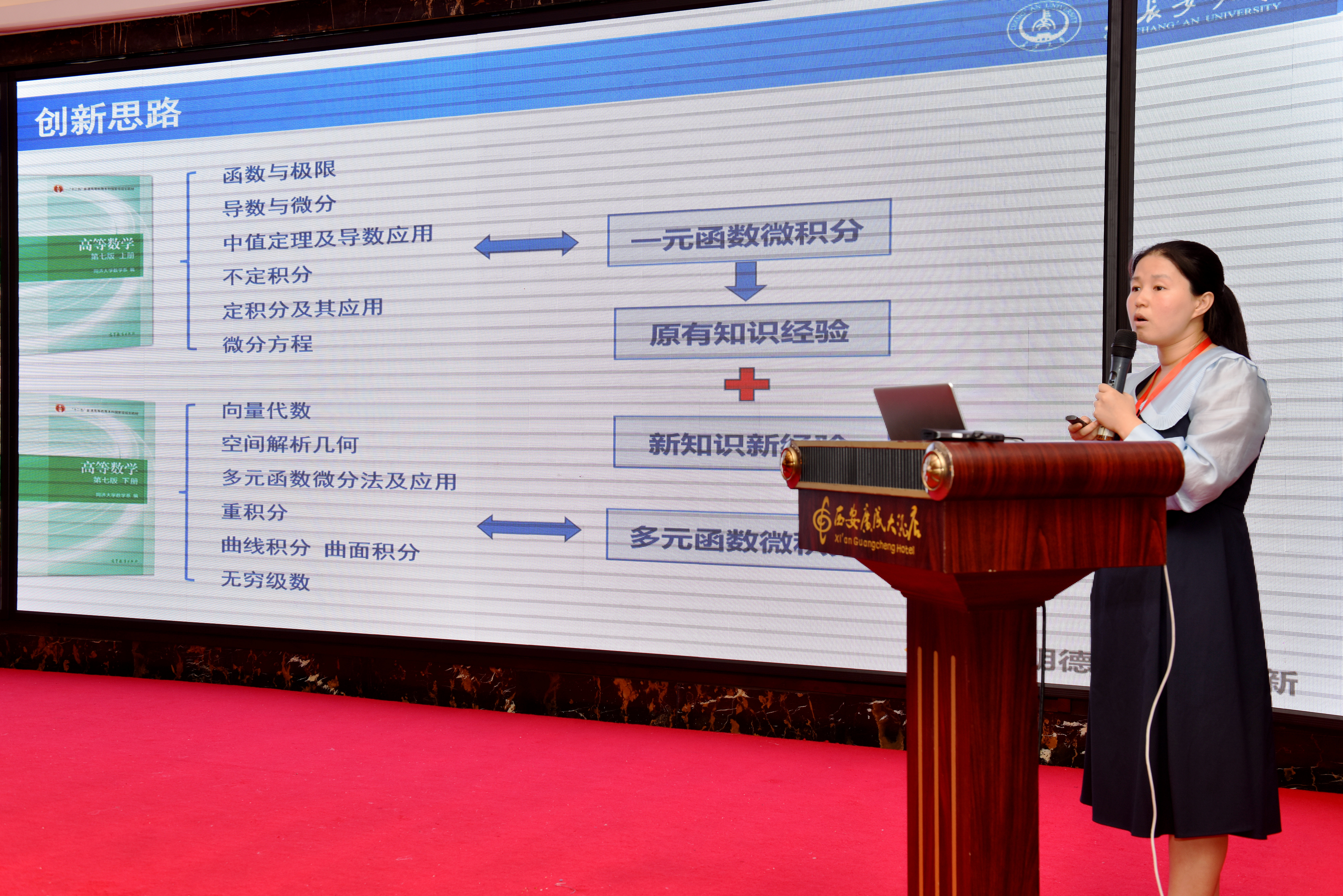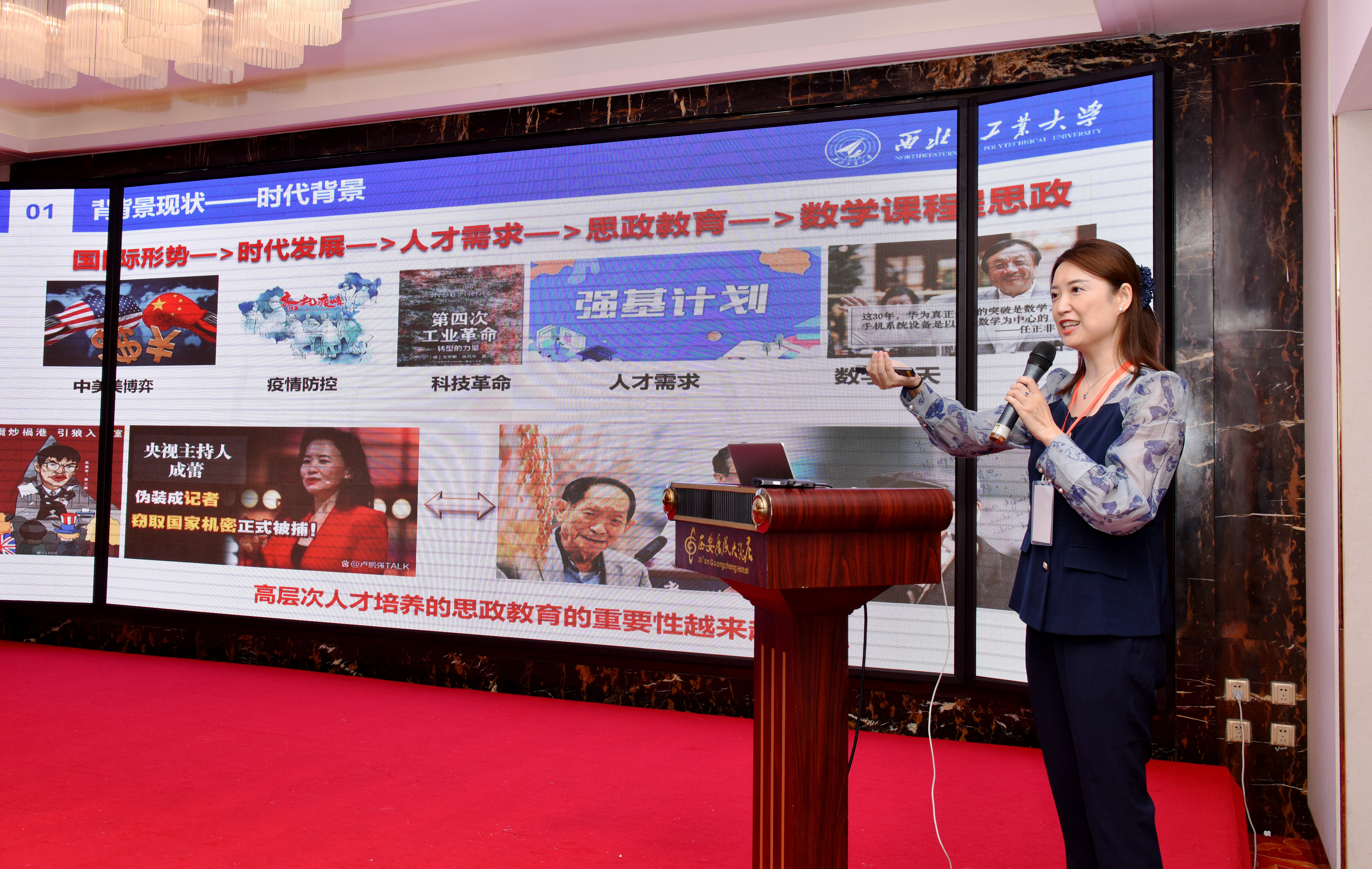 会议的特邀专家分享环节由西安交通大学城市学院副校长朱旭教授主持,特别邀请香香腐宅 副院长都琳教授以“肩负时代使命 践行课程育人——《概率论与数理统计》课程思政探索与实践”为题进行分享,特别邀请长安大学杨莹老师以“基于建构主义学习理论的《高等数学(下)》课程教学创新——以‘对弧长的曲线积分’为例”为题的课程教学创新示范交流分享。