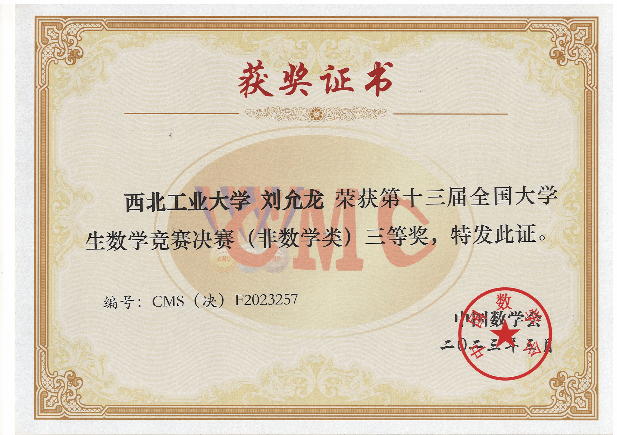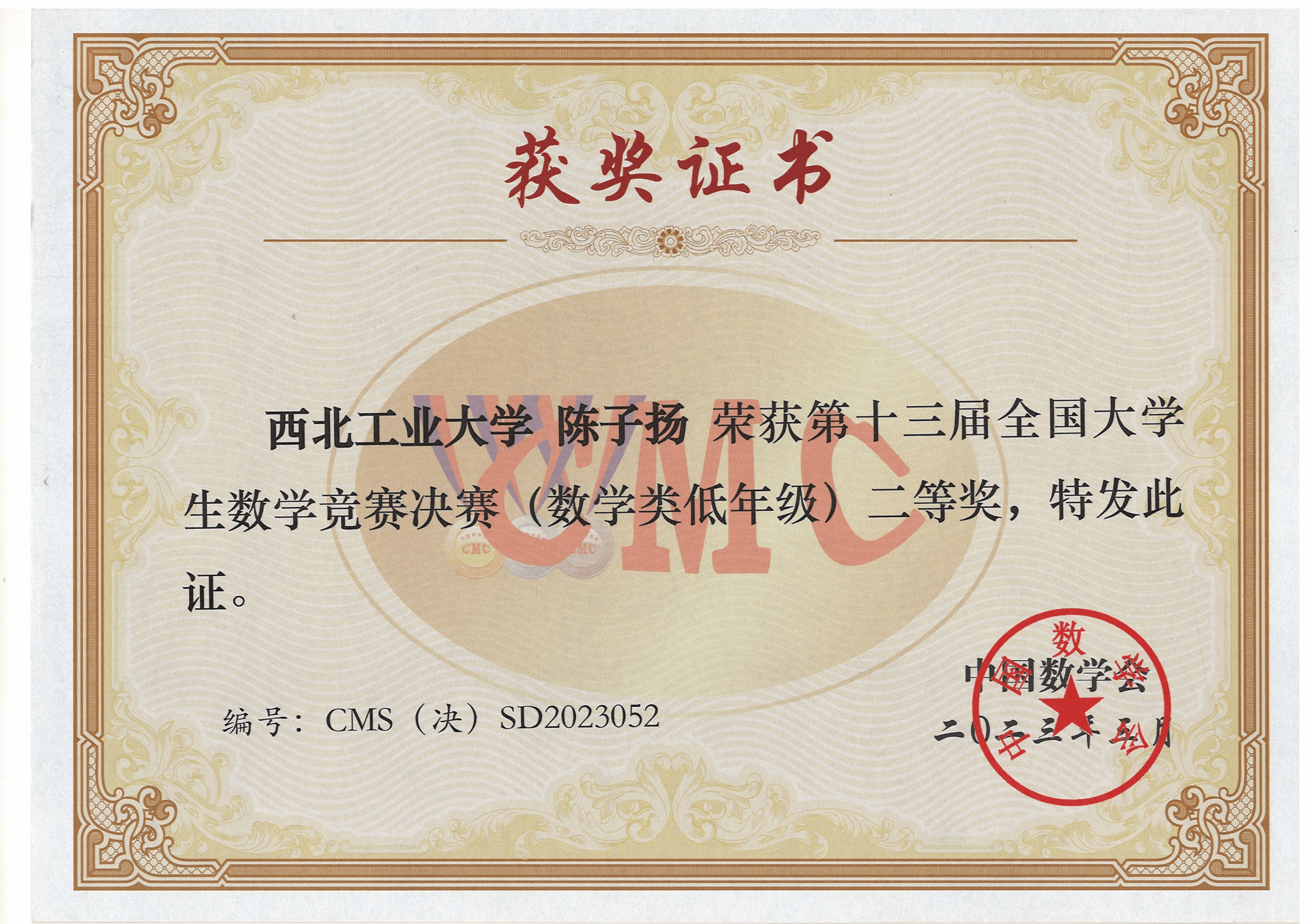 本次全国大学生数学竞赛共有218823人报名参加初赛,748人进入决赛,实际参加决赛人数732人(数学专业组382人、非数学专业组350人)。在紧张激烈的比拼中,我校6名入选决赛的同学全部获奖,其中软件学院蔡周阳和航天学院钟忠双双获得非数学专业组全国一等奖,一等奖获奖比例约千分之0.6。另外,我校香香腐宅 陈子扬和刘思哲参加数学专业低年级组比赛以陕西赛区第一名和第二名的好成绩获得了数学专业组全国二等奖的好成绩,二等奖获奖比例约为千分之0.9。