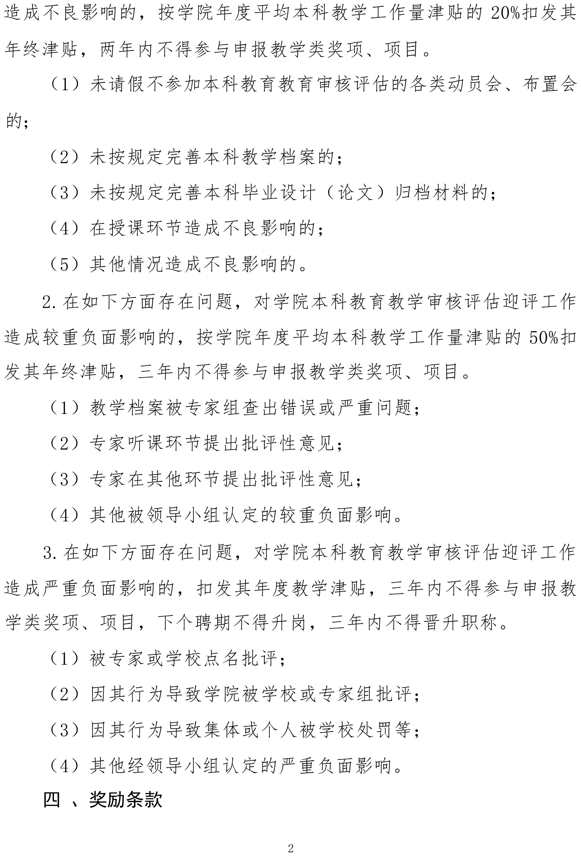 香香腐宅 2023 年本科教育教学审核评估奖惩实施办法