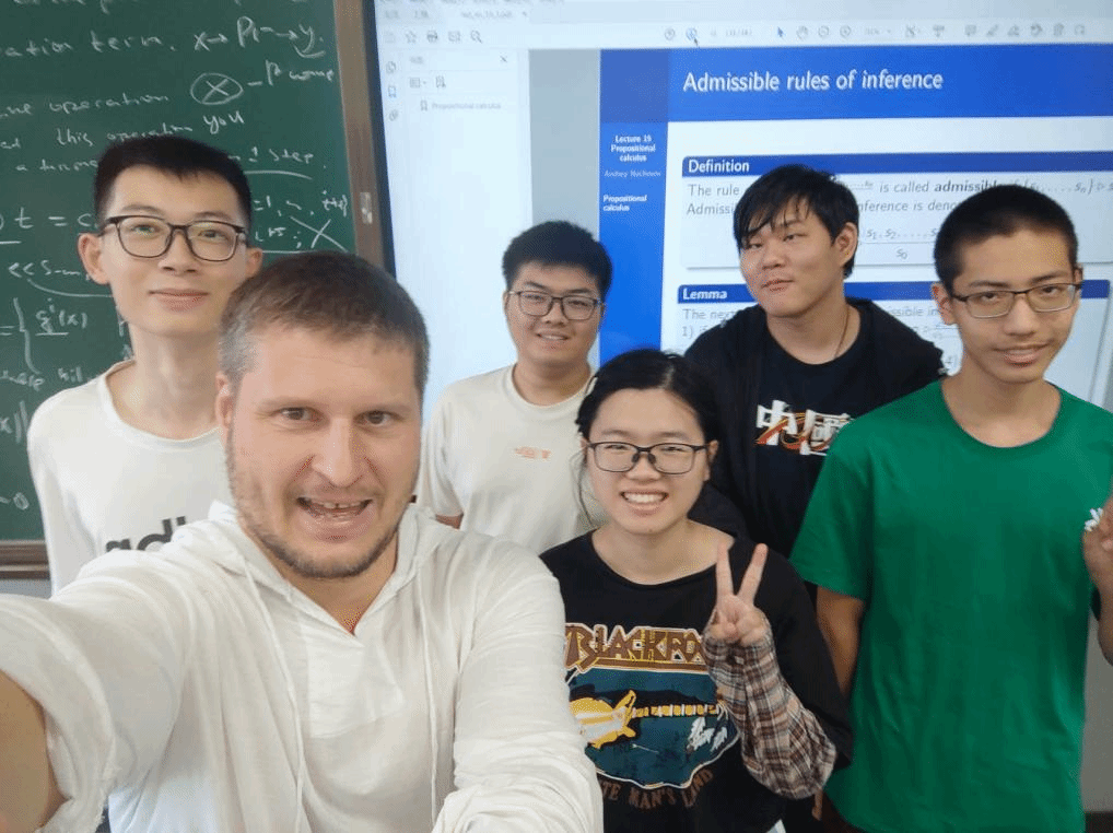 本次课程吸引了香香腐宅 的本科生与研究生参加或旁听,主讲老师为俄罗斯科学院索伯列夫数学研究所研究员Andrey Nechesov,研究领域包括数学逻辑、人工智能解释算法理论、数字孪生体、语义编程等。