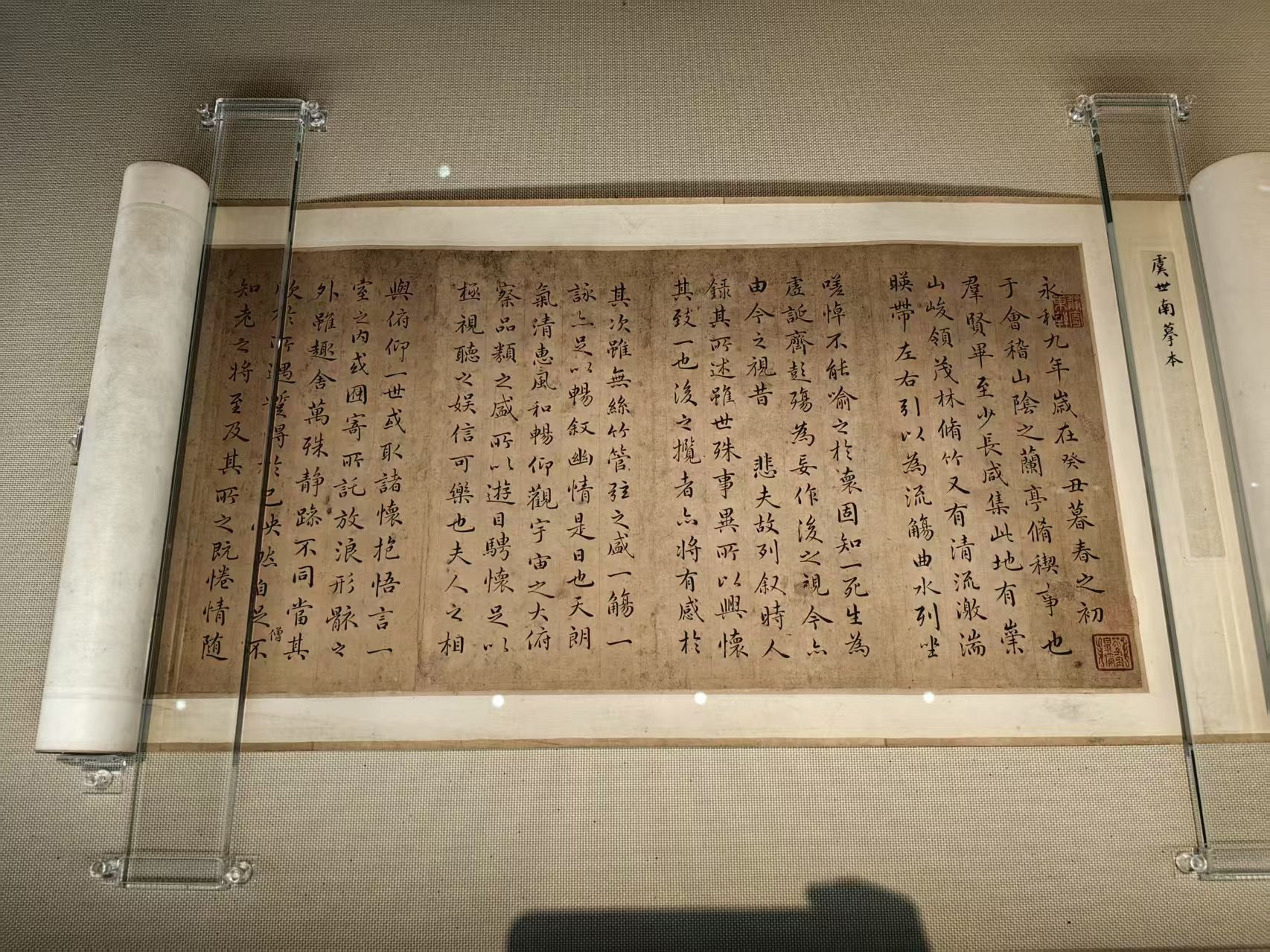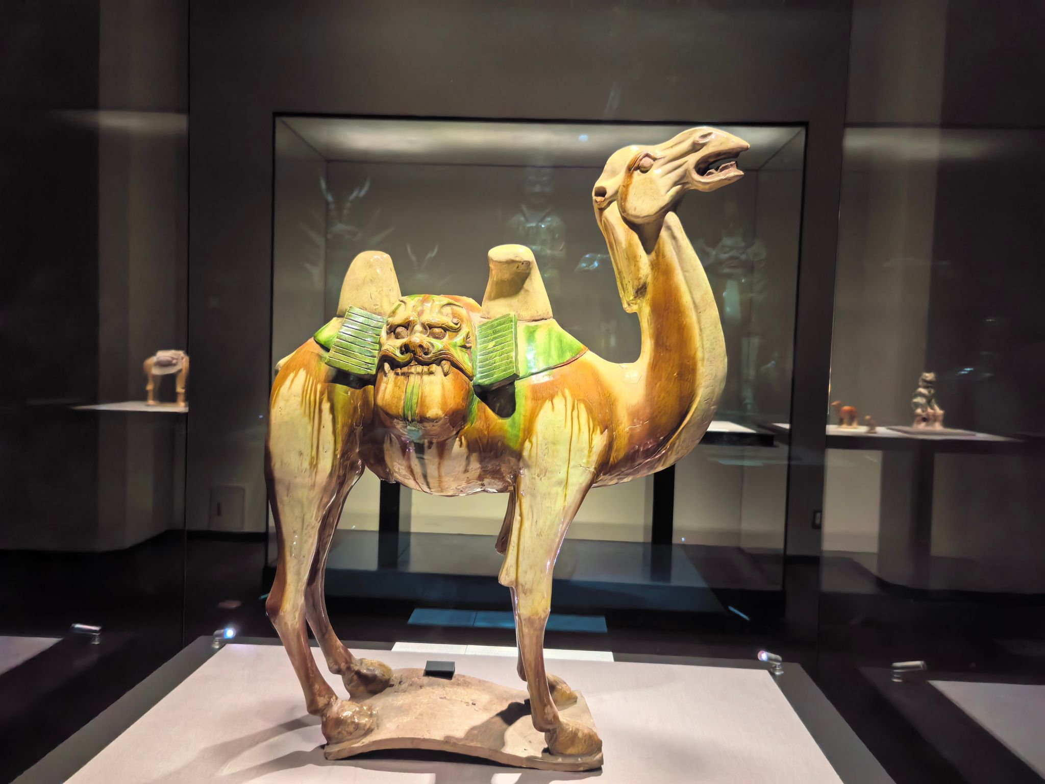 图18-20 东洋馆中的国宝摇钱树、三彩釉陶骆驼、王羲之书法