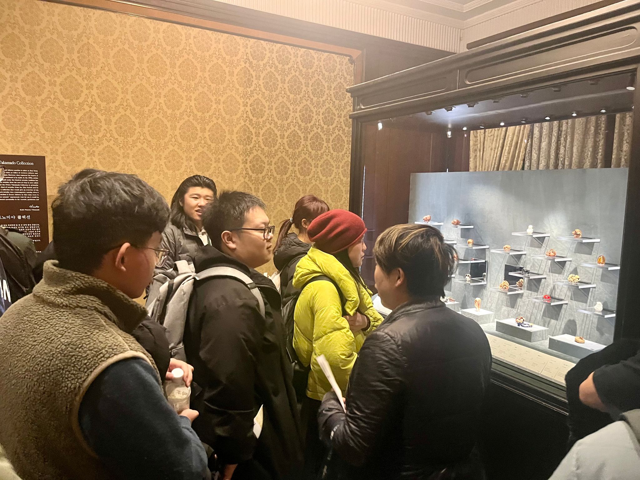 1月15日清晨,同学们踏入东京国立博物馆的庄严大门,很快便沉浸在一片悠久历史与艺术的长河之中。深刻感受到日本深厚的文化积淀。特别是当步入东洋博物馆,面对栩栩如生的摇钱树、精致的三彩釉骆驼,以及王羲之那飘逸脱俗的书法作品等诸多历史文物时,无不被中国历史文化的辉煌所深深折服。