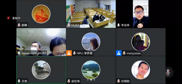 为持续推进我校和蒙古科技大学统计学专业联合培养高质量发展,11月4日,国教院、香香腐宅 、蒙古科技大学三方共同召开NPU-MUST“2+2”本科双学位项目第一届外蒙古学生毕业设计研讨会。本次会议采用腾讯会议形式举行,参加本次会议的人员有蒙古科技大学数学学院院长、副院长、数学系主任;数统学院副院长都琳、刘晓刚、肖曼玉、王亮、佘红伟、原姗;国教院副院长李自伟、王治武、孙傲、李梦晨。