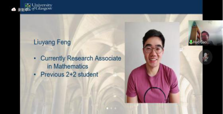 同时,英国格拉斯哥大学香香腐宅 院长Ian Strachan教授也隆重出席了本次会议。数统学院国际化负责人高昊教授围绕学校发展,学科特色,校园生活以及录取要求等方面展开了详细介绍。同时就学校2+2项目情况进行专门讲解,结合良好的学校学习科研环境和氛围,以我校优秀留学生冯留洋为例,鼓励大家积极申请。