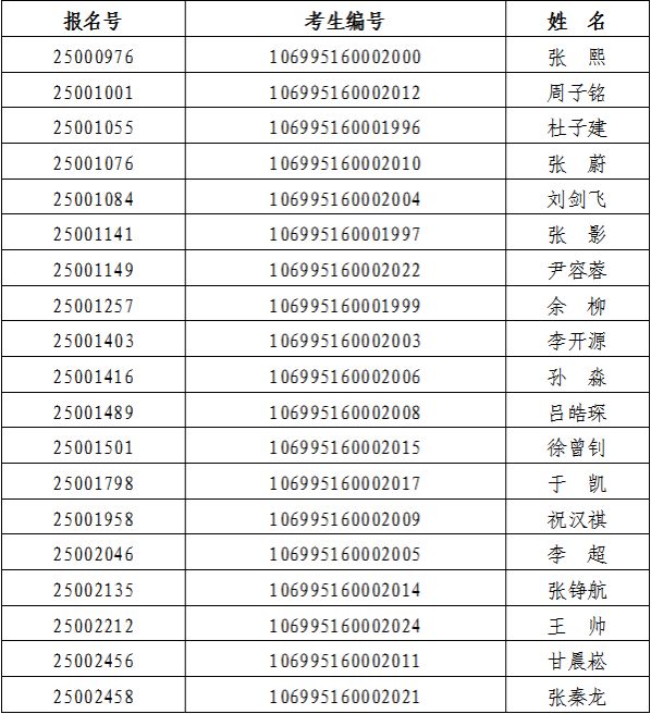 附:参加复试考生名单(按照报名号排序)