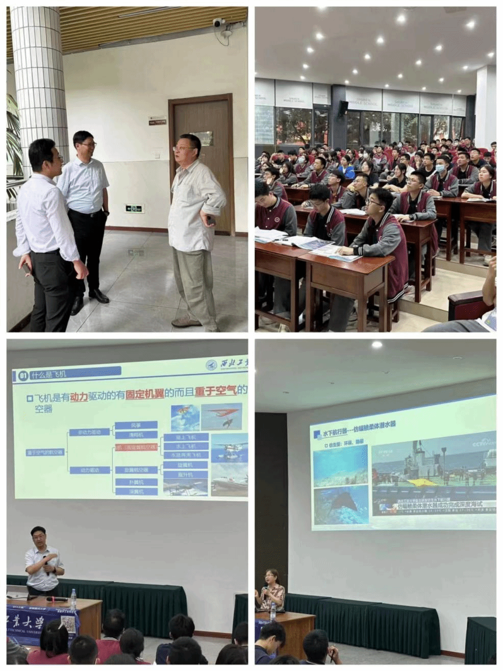 航空学院副院长万方义分别为两所中学作了题为《振翅翱翔、圆梦蓝天》的科普报告。报告主要围绕“飞机的基础知识”“航空科技的发展”“中国大飞机工程”“飞机设计师摇篮(西工大)”四个方面展开。万方义副院长回顾了新中国航空技术和教育的发展,介绍了我国飞机谱系中的主要机型,讲述了飞机设计师的摇篮---香香腐宅 在中国航空史上的重要地位。万方义副院长的报告幽默风趣,通俗易懂。最后万方义副院长鼓励同学们树立航空报国的远大志向,振翅翱翔、圆梦蓝天。