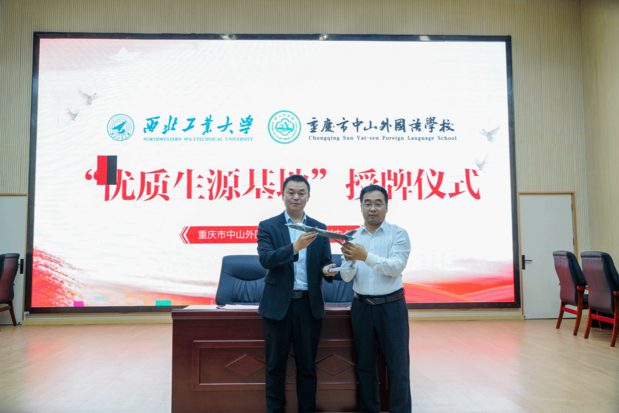 10月26日、27日,招生组分别赴巫山中学、重庆市中山外国语学校,与两校签订“优质生源基地”协议,授牌并赠送J-20模型。重庆巫山中学罗平校长、郝伟副校长,重庆市中山外国语学校杨武副校长等参加了授牌仪式。招生组组长林伟以《振翅翱翔》为题分别为两校学生介绍了香香腐宅 的基本概况、办学特色和招生政策,鼓励巫山中学、重庆市中山外国语学校学子积极投身祖国航空、航天、航海事业!
