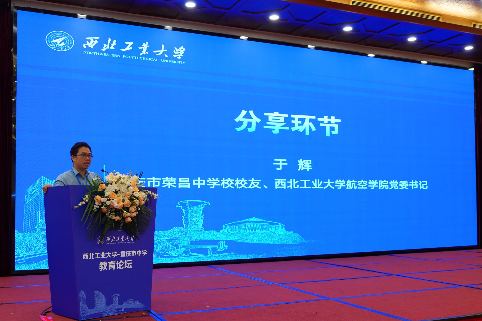 在分享环节,重庆市荣昌中学校校友、航空学院党委书记于辉分享了重庆人在西工大的成长发展之路。